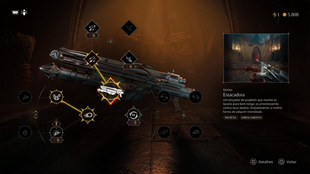 Eu fiquei decepcionado com as armas do jogo. Elas podem ser vistas em vários outros games do gênero, tanto em funcionamento quanto em design. A Disparadora de Estacas e a Painkiller foram as únicas que me garantiram um sorriso enquanto desmembrava as hordas de inimigos. Como era de se esperar, os upgrades das armas acontece de maneira bem direta ao ponto usando núcleos obtidos nas missões. A equipe não quis prender os jogadores em sistemas e tirar o tempo da ação.