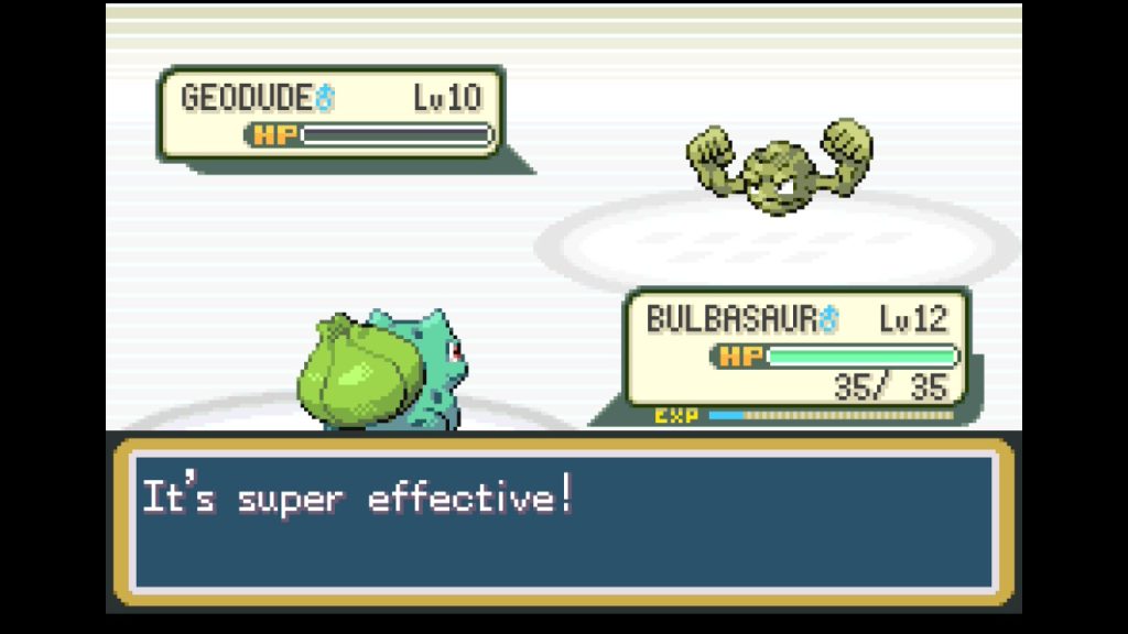 Aspectos mais “antiquados” como esse trazem coisas positivas e negativas à experiência. Por um lado, o jogo todo se torna muito mais desafiador, já que você precisa realmente pensar em quais Pokémon treinar para enfrentar cada ginásio ao longo do caminho. Comparativamente, os jogos modernos são muito mais fáceis que FireRed e LeafGreen. O ponto negativo, contudo, é que o jogo pode passar a exigir um certo nível de grinding em determinados pontos da aventura, principalmente se você estiver tentando capturar muitas criaturas e montar times variados.