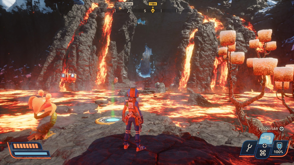 Além disso, ao contrário de muitos jogos de sobrevivência ou exploração, Revenge of the Savage Planet não exige gerenciamento excessivo de inventário. Há apenas quatro tipos de recursos, e você obtém a maioria naturalmente. Isso evita frustrações e mantém o foco na ação e na exploração.