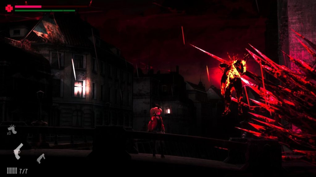Silly Polly Beast apresenta um conceito de mundo visualmente incrível. A realidade alternativa do game se revela sob tonalidades rubras, destacando uma oposição entre a paleta e o escuro.