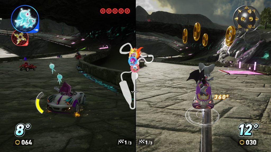 Embora essas mecânicas inéditas tornem Sonic Racing: CrossWorlds um jogo mais único em relação aos seus predecessores, existem alguns aspectos que ainda o fazem ficar um pouquinho abaixo de Sonic & SEGA All-Star Racing Transformed. O primeiro deles está ligado aos tipos de poderes disponíveis no jogo.