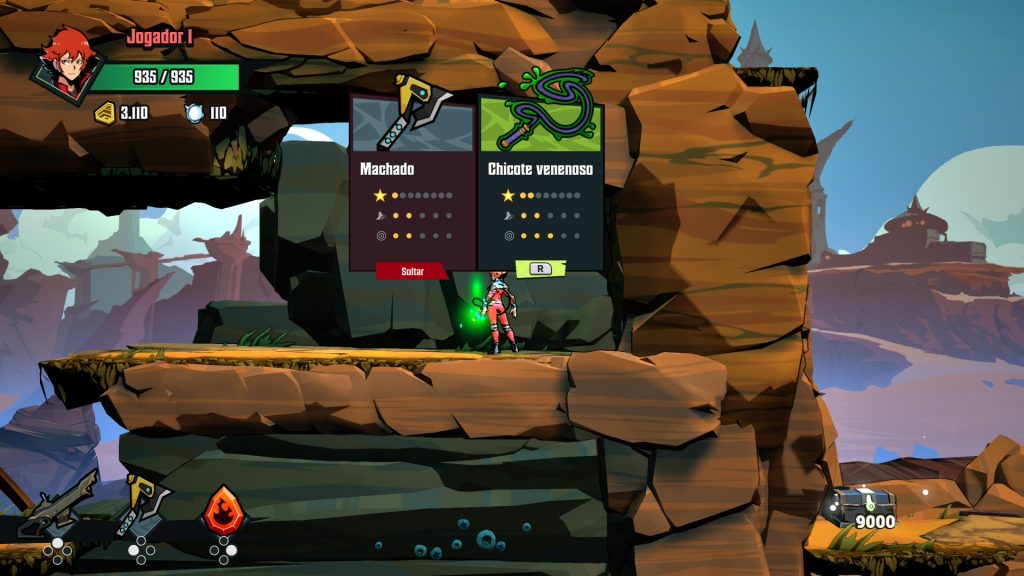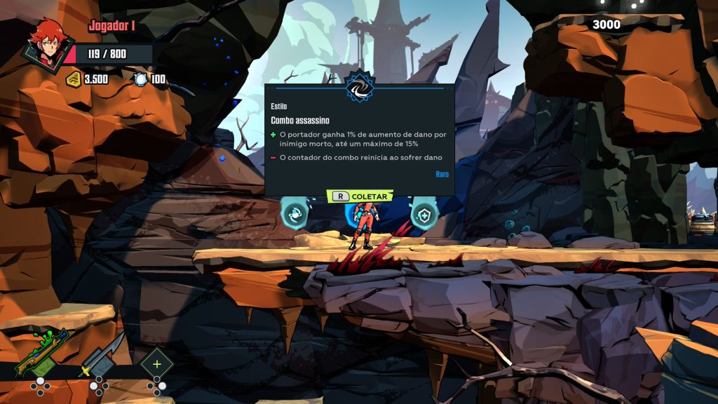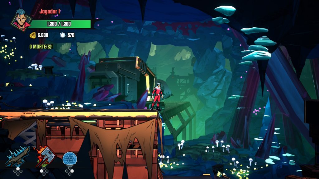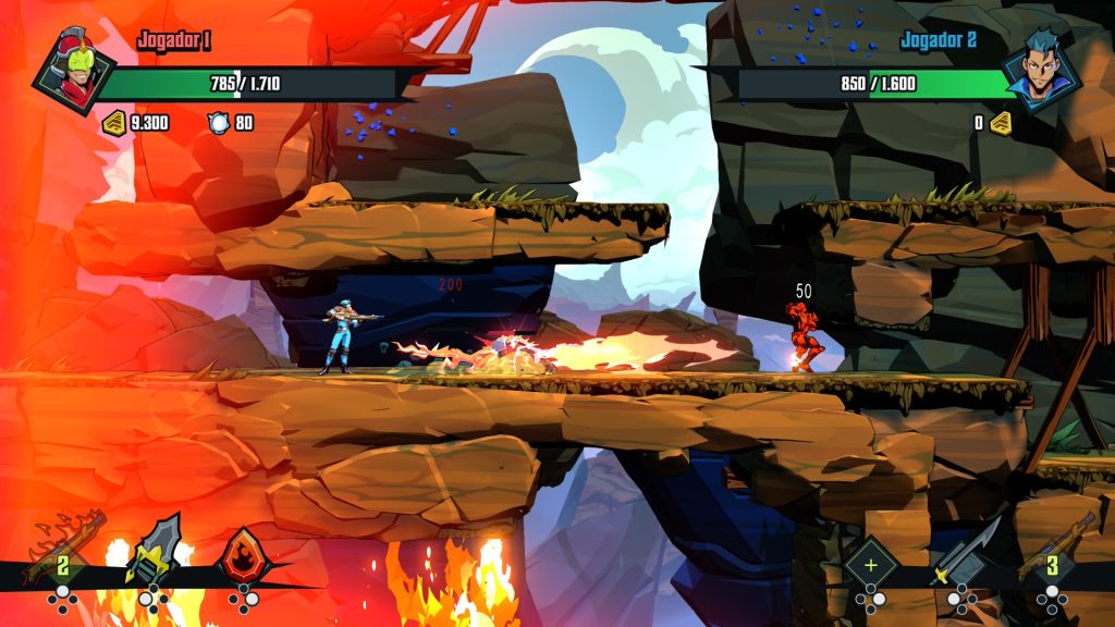 É em meio a esse cenário super competitivo que Storm Lancers chega ao Nintendo Switch 1, Nintendo Switch 2 e PC, trazendo uma experiência bastante típica de roguelike, dentro de um formato de plataforma side scrolling, que lembra jogos como Dead Cells. Em Storm Lancers, você encontra o “pacote padrão” de um roguelike, que inclui elementos procedurais, upgrades temporários, e um sistema de morte punitivo que pode ser atenuado com o tempo. O grande diferencial do jogo é a possibilidade de jogar em co-op, mas será que isso é o suficiente para fazê-lo se destacar?