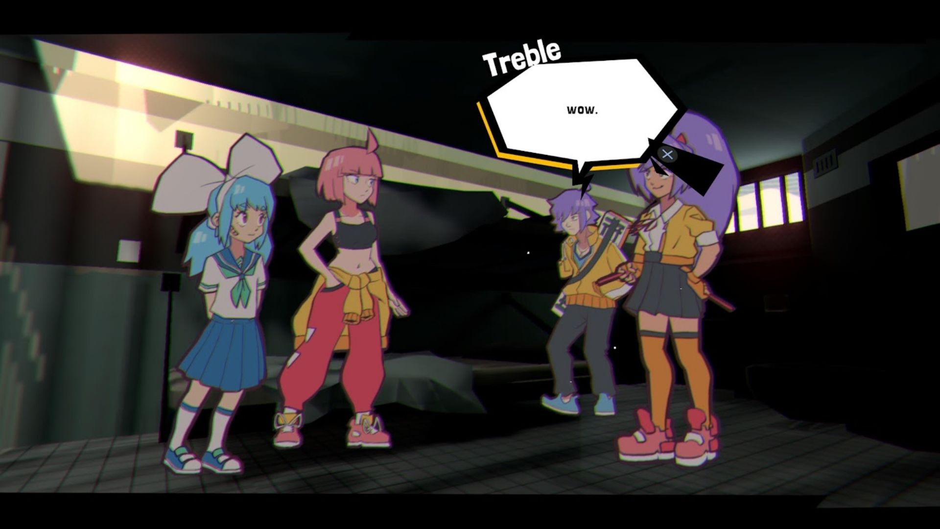 A estrutura do modo história mistura exploração 2D, elementos leves de plataforma e uma série de minigames rítmicos. O game tem duas opções de dificuldade: Normal e Difícil, além disso, podemos ajustar a velocidade dos desafios rítmicos.
