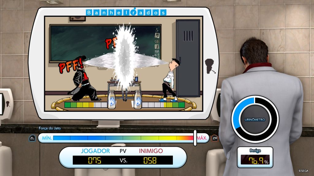Colocar Kiryu para controlar um cabaré decadente, passar horas no fliperama jogando títulos antigos da SEGA, ou explorar as esquisitices de Kamurocho e Sotembori geram alguns dos momentos mais divertidos deste segundo título — isto é, se você tiver a fim de “entrar na brincadeira” e aceitar as esquisitices do jogo. Vale ressaltar que, tal qual o primeiro título, Kiwami 2 também está inteiramente localizado na nossa língua. Infelizmente, a tradução deste segundo jogo também possui alguns pequenos erros de concordância aqui e ali, mas nada que comprometa a experiência final.
