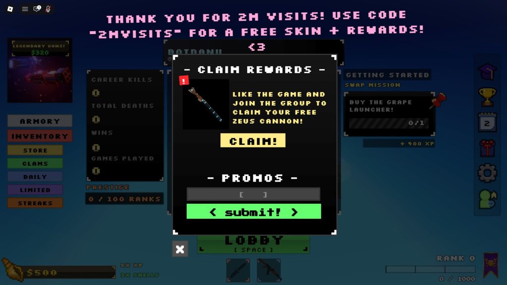 - Pressione “Submit!” para resgatar os itens.