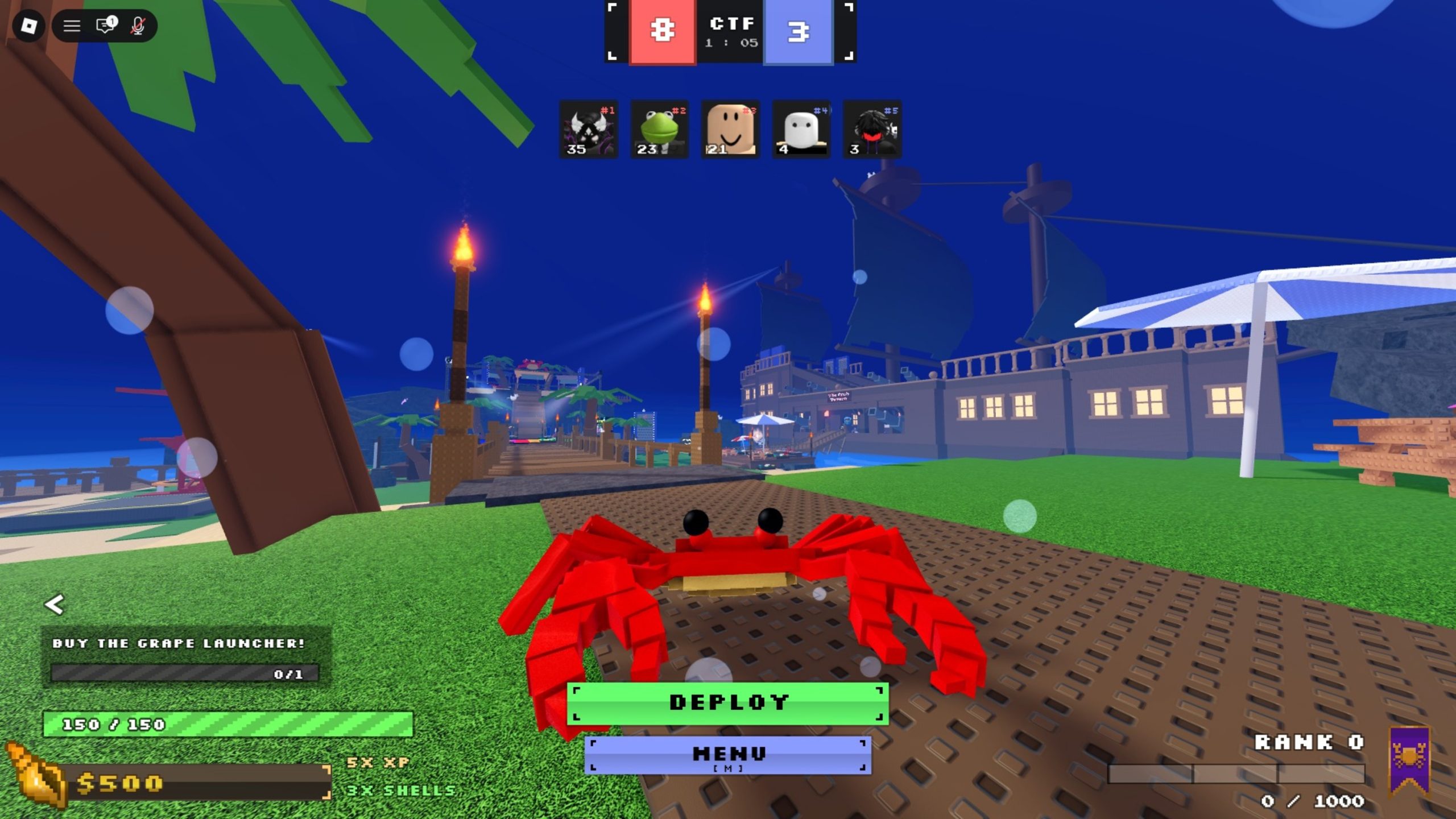 - Abra o jogo Crab Royale no Roblox.