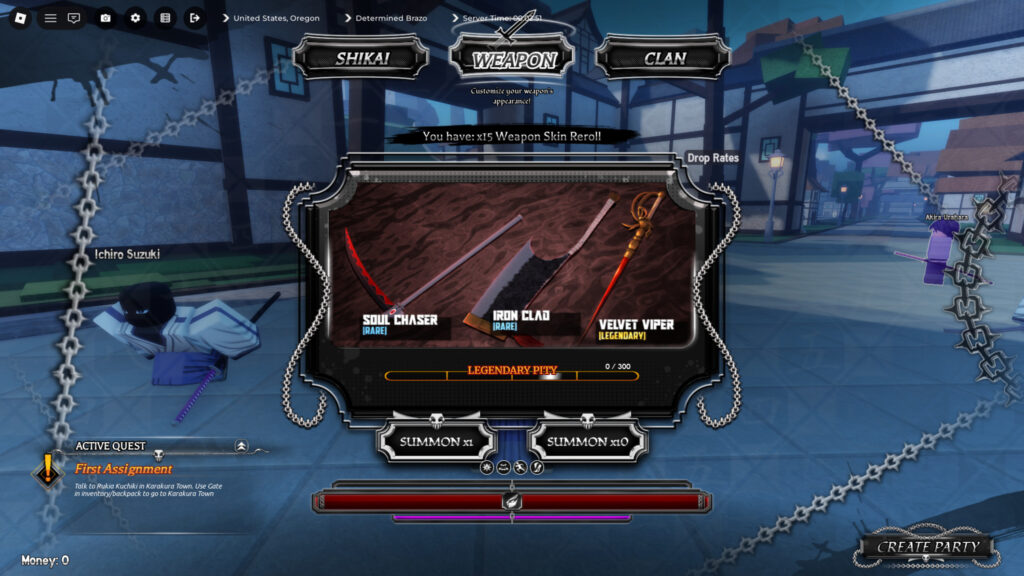 | freerolls | 25 Rerrolamentos de Skin de Arma, 15 Rerrolamentos de Shikai, 10 Rerrolamentos de Clã |