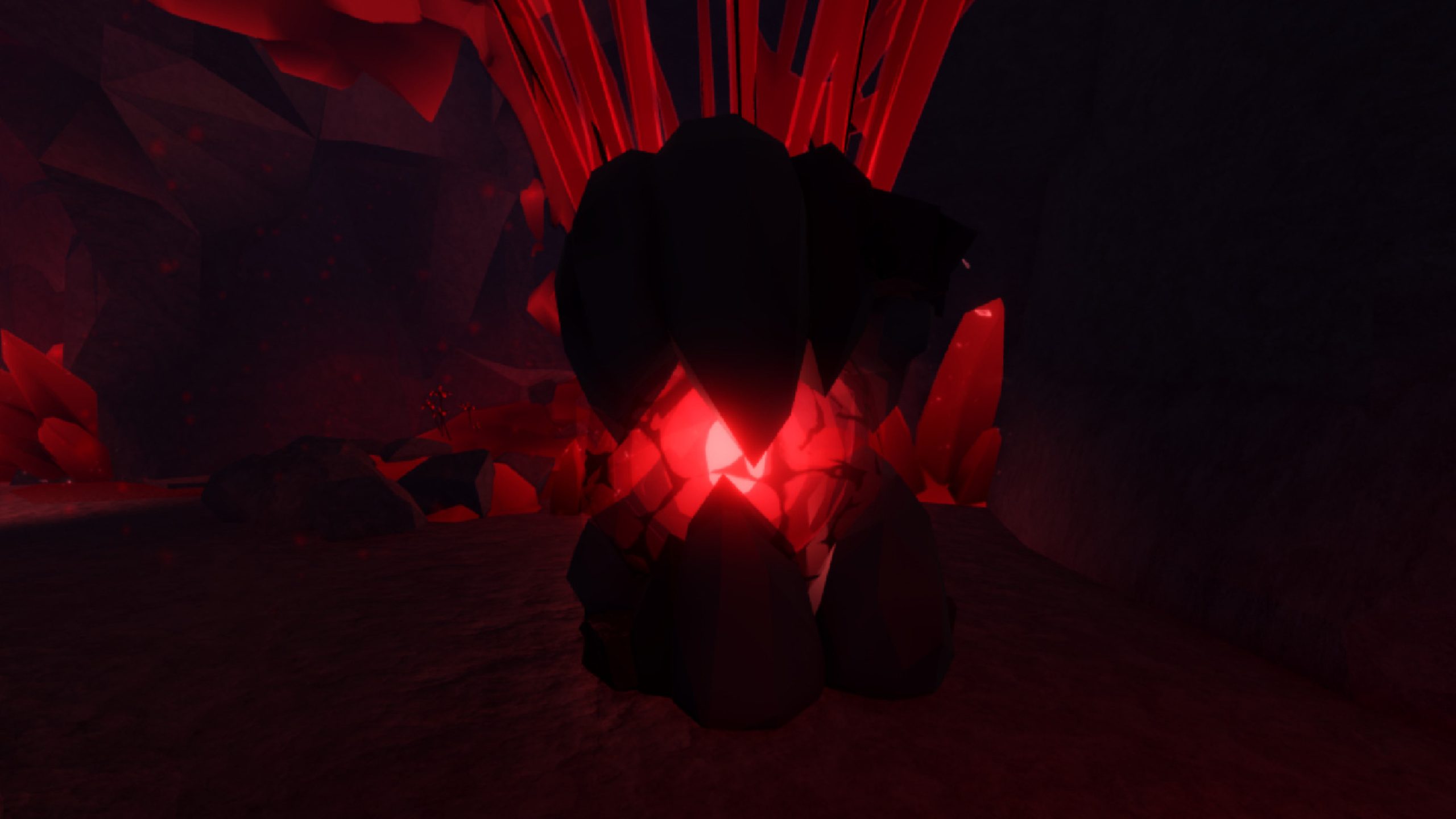 As pedras que contêm o minério não têm tentáculos e se assemelham a grandes blocos de rocha vermelha localizados no fundo da caverna.