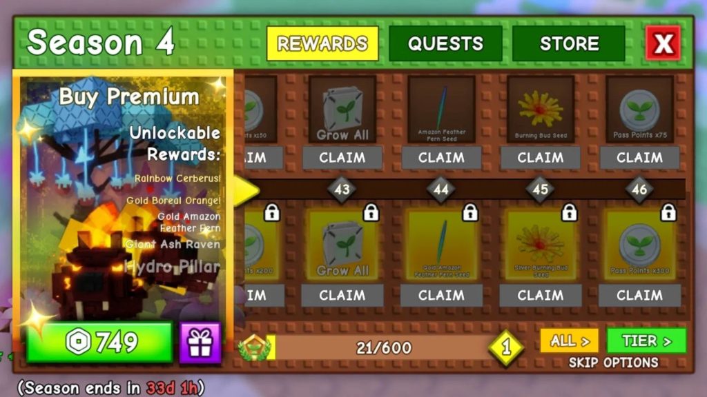 Como conseguir a semente no jogo? É possível obtê-la atingindo o nível 44 do Passe de Temporada ou abrindo Pacotes de Sementes com 4,5% de chance.