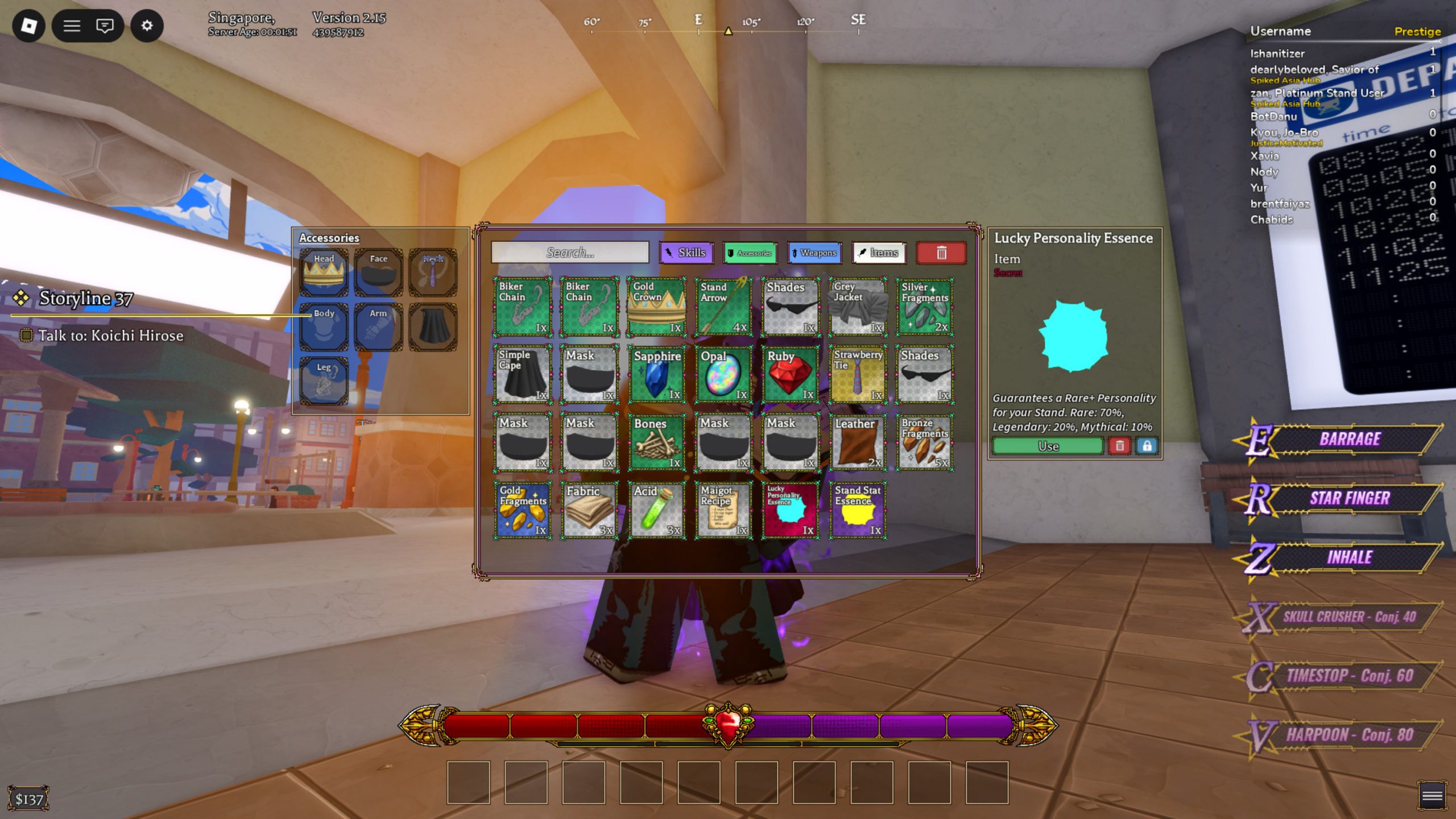 Os jogadores também podem alterar essas características utilizando Essência de Stand, um recurso usado para rerrolar a personalidade atual e tentar obter uma opção mais forte.