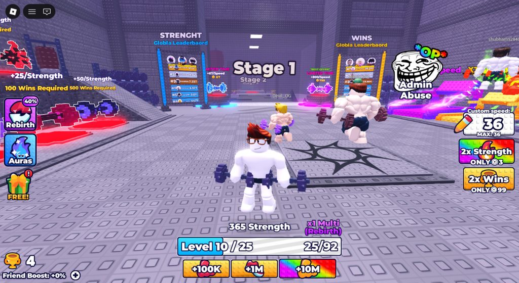 +1 Músculo por Passo no Roblox é um simulador focado em progressão contínua, onde treinar, vencer o percurso e reinvestir vitórias é o ciclo principal para crescer no servidor.