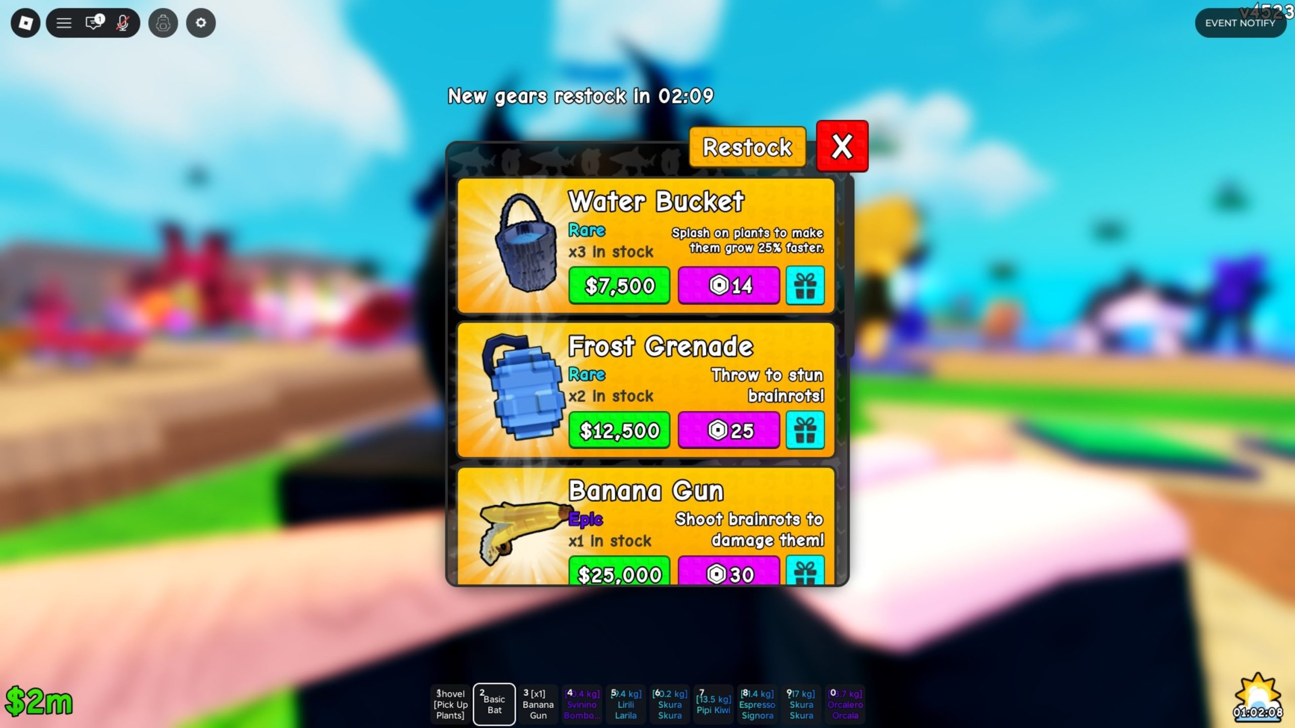 Lançador de GeloCongela brainrots e reduz velocidade em 50%Lendário$125.000