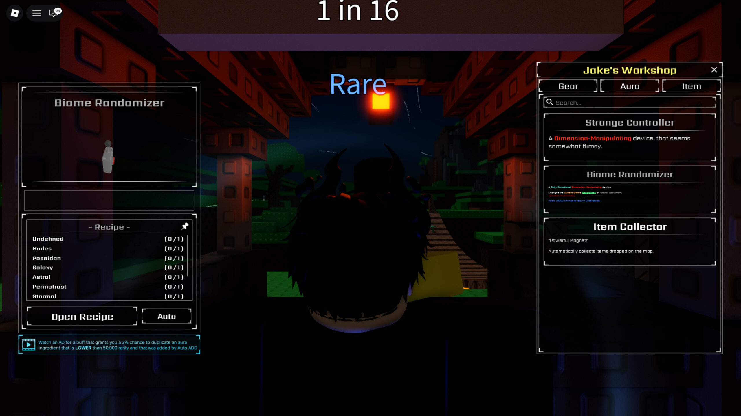| Randomizador de Bioma | Fabricar na Oficina do Jake | Muda o bioma aleatoriamente com chances iguais para cada opção |