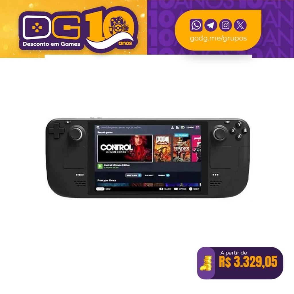 Mesmo após a Valve anunciar oficialmente o Steam Machine, o Steam Deck segue como uma das melhores opções do mercado, sendo capaz de rodar jogos como God of War: Ragnarök, Marvel’s Spider-Man 2 e muitos outros com excelente desempenho. Confira a oferta abaixo: