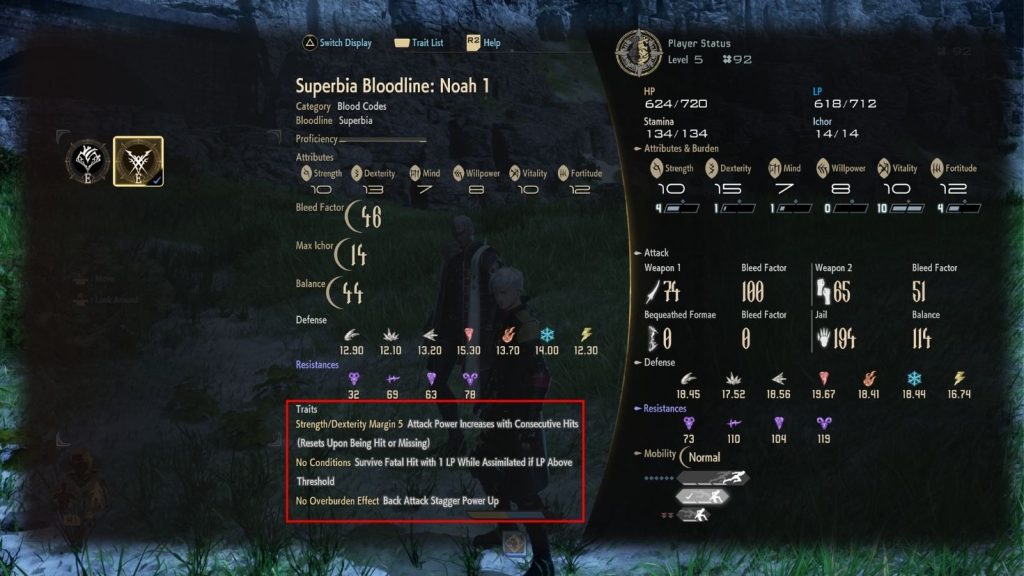 Cada Código de Sangue também possui Características próprias, efeitos passivos que entram em ação sob determinadas condições e ajudam a moldar sua abordagem em combate.