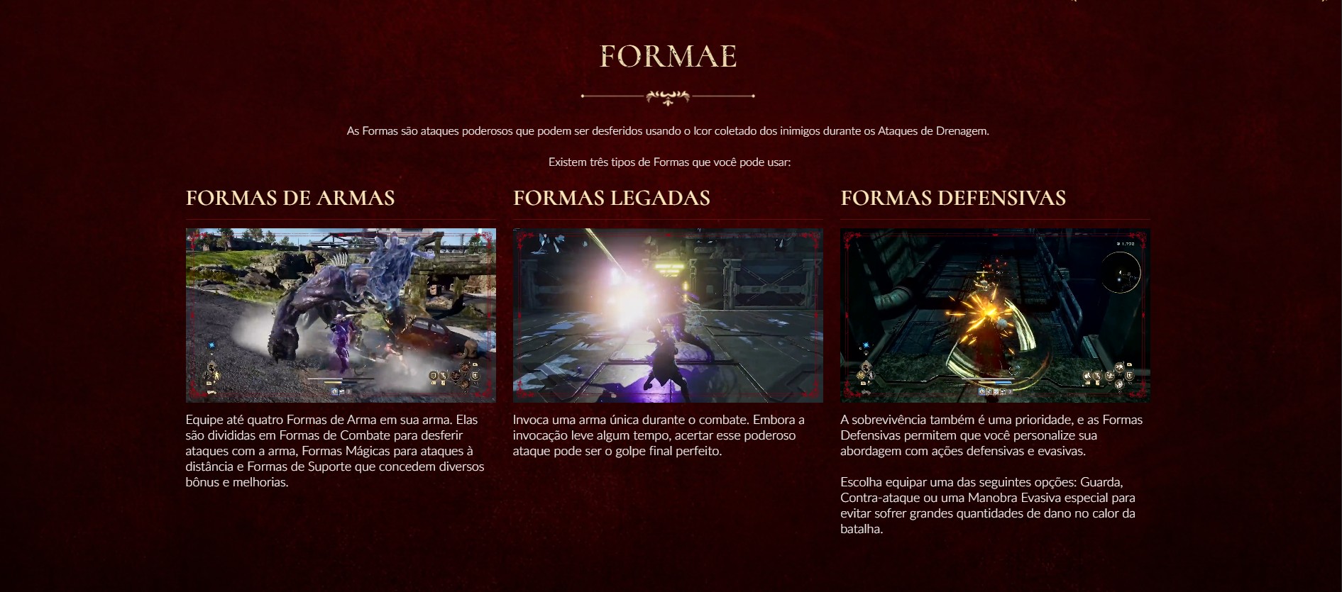 As Formae funcionam como o núcleo das builds e podem assumir diferentes funções durante a ação. Algumas focam em ataques diretos, outras permitem ações à distância ou oferecem suporte. Há também Formae defensivas, que ajudam a lidar com situações mais tensas.