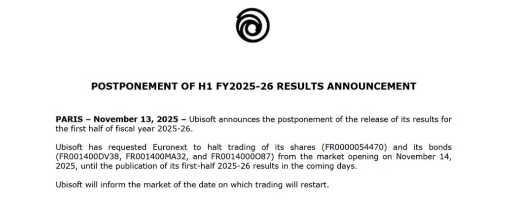 A Ubisoft adiou, sem previsão de nova data, a divulgação dos resultados referentes ao primeiro semestre fiscal de 2025–2026.