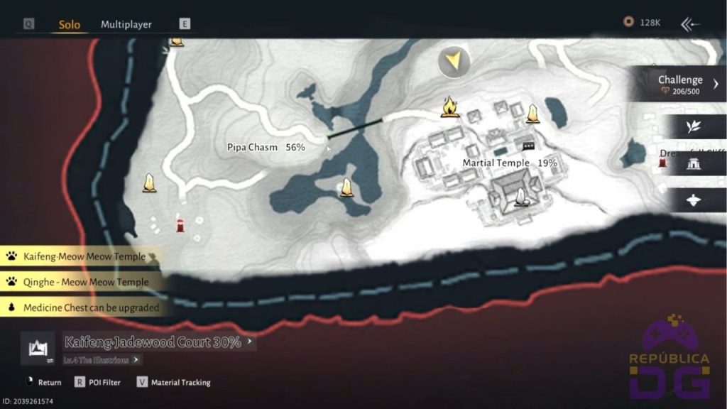 Siga para o Espelho de Jade, localizado entre a Fenda Pipa e o Templo Marcial. Nessa área, você precisa encontrar três peças da Águia de Madeira: